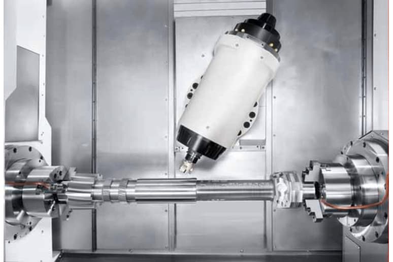Сверхширокий диапазон вращения по оси B (220°) позволяет использовать как основной, так и вспомогательный шпиндель (поставляется по специальному заказу) при одинаковой площади обработки. Привод по оси B в конфигурации оси NC-B обеспечивает точность обработки до 0,001°, что обеспечивает высокую точность блокировки по 5 осям.