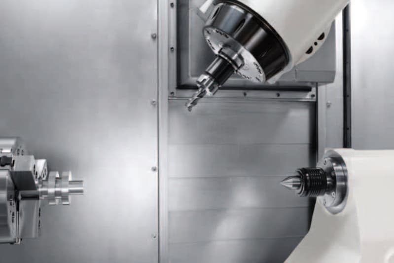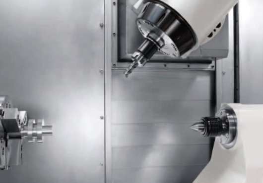 Сверхширокий диапазон вращения по оси B (220°) позволяет использовать как основной, так и вспомогательный шпиндель (поставляется по специальному заказу) при одинаковой площади обработки. Привод по оси B в конфигурации оси NC-B обеспечивает точность обработки до 0,001°, что обеспечивает высокую точность блокировки по 5 осям.
