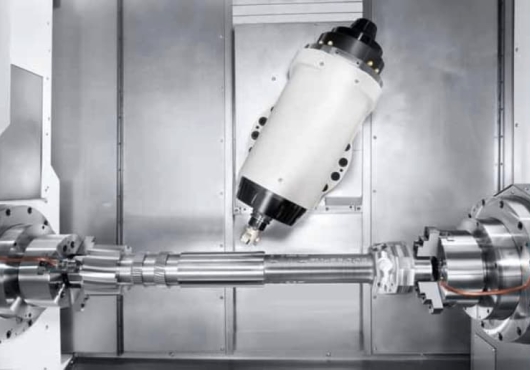 Сверхширокий диапазон вращения по оси B (220°) позволяет использовать как основной, так и вспомогательный шпиндель (поставляется по специальному заказу) при одинаковой площади обработки. Привод по оси B в конфигурации оси NC-B обеспечивает точность обработки до 0,001°, что обеспечивает высокую точность блокировки по 5 осям.